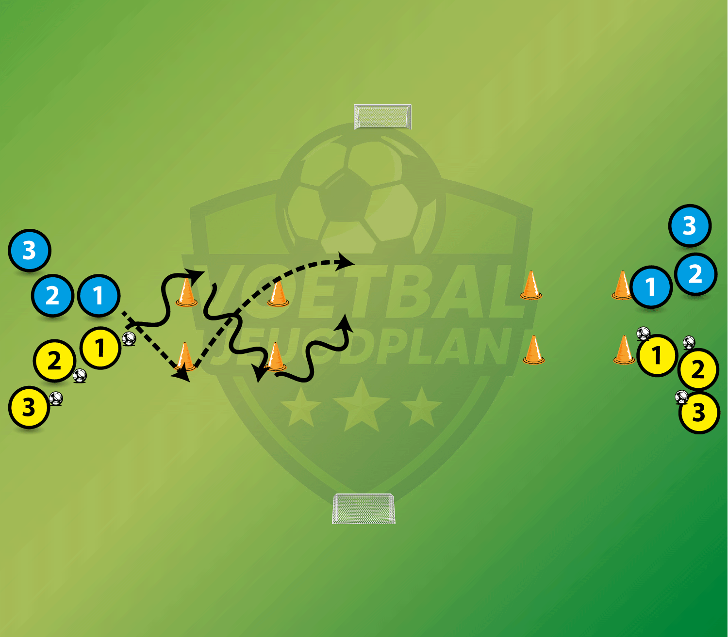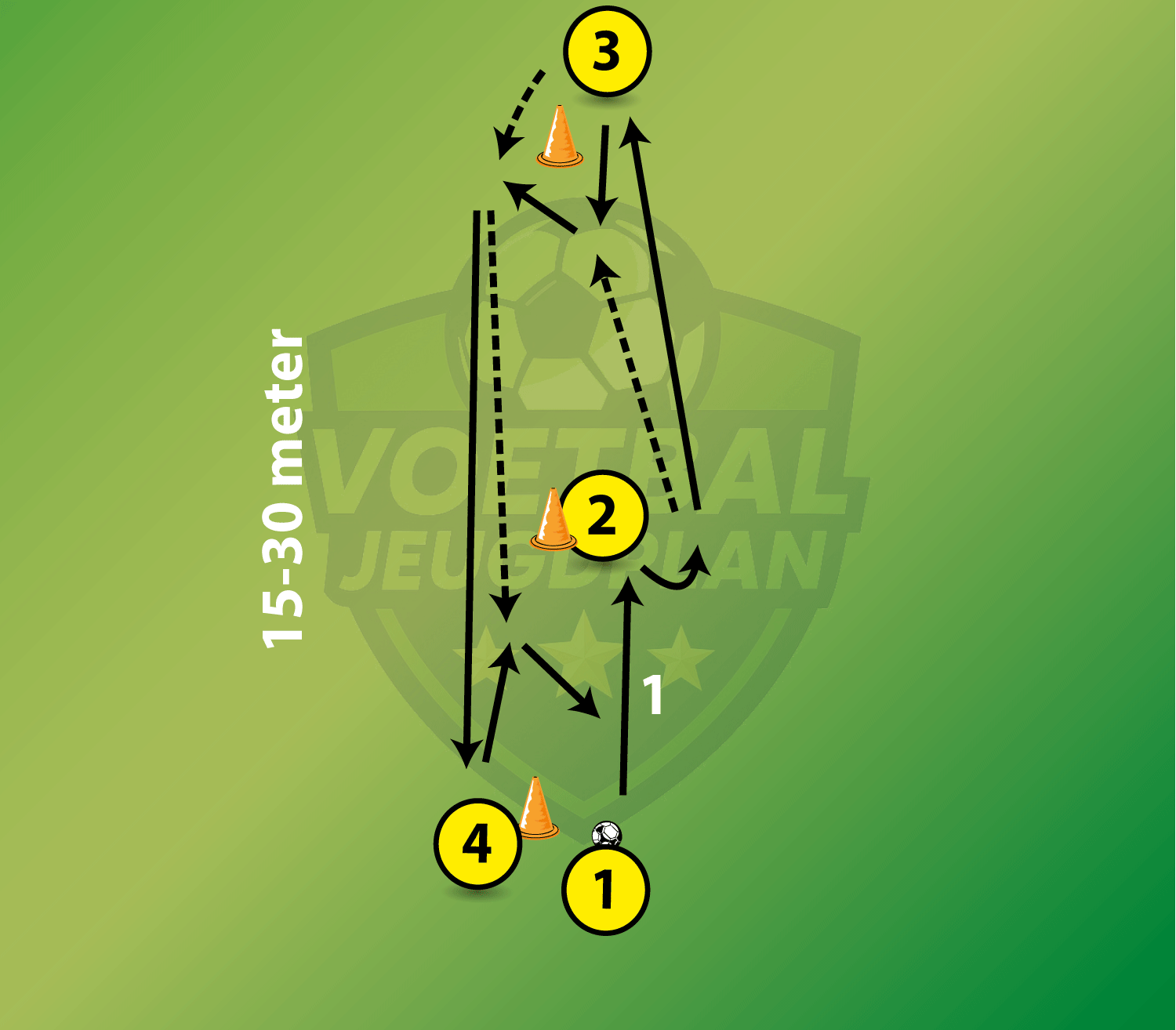 1 tegen 1 vanaf 2 kanten na korte zigzag