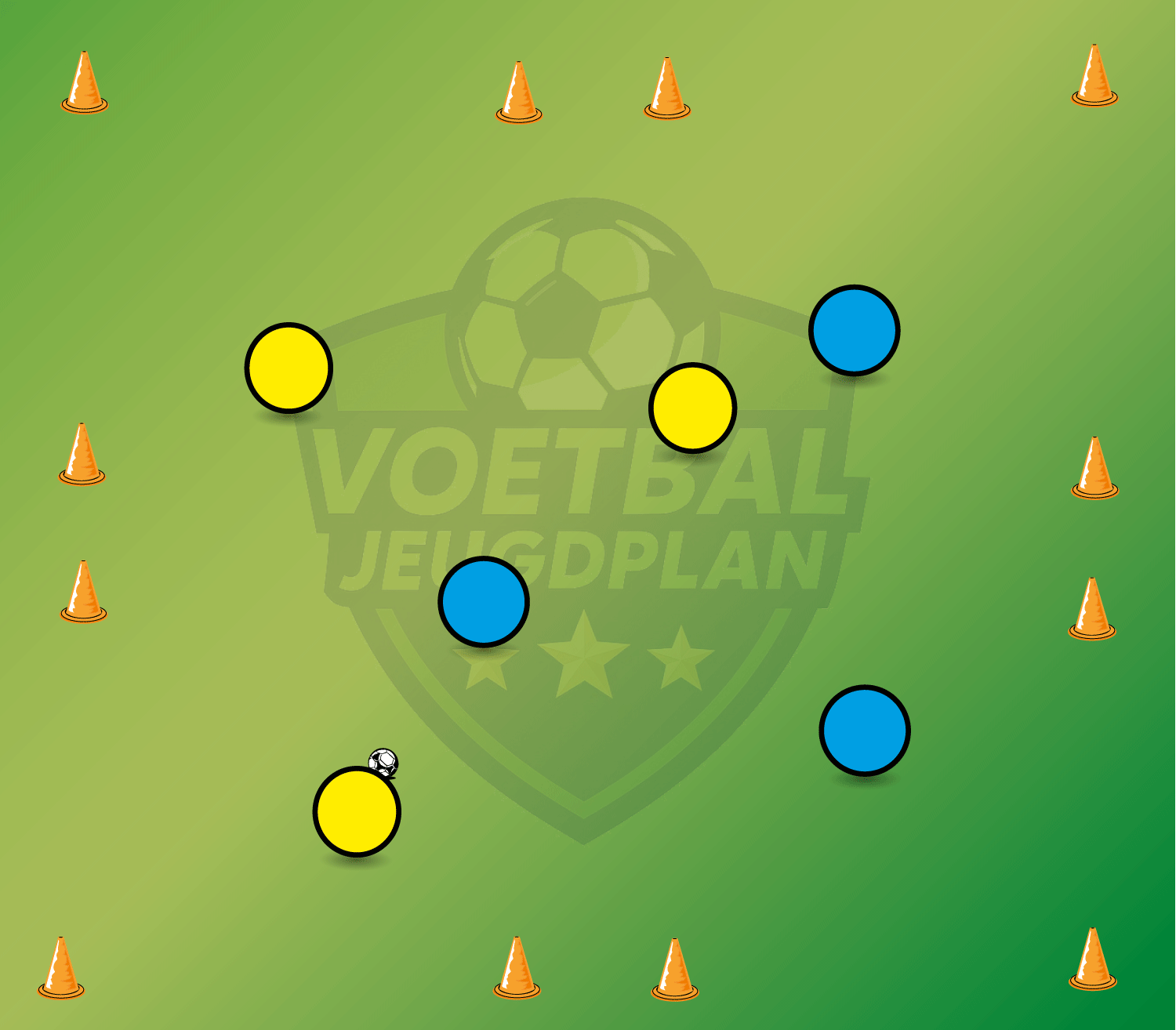 Partijspel 6 tegen 6 op 4 doeltjes | verplicht aannemen